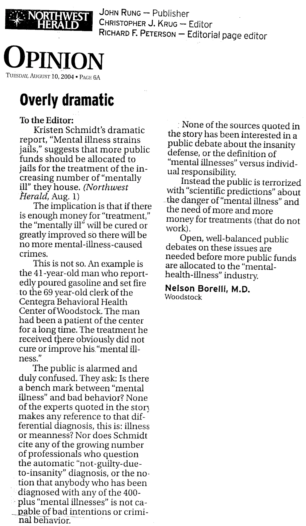 In the “Introduction” section of this Web site, I express the basic concepts that some professionals, myself included, have about Mental Illness, Mental Health and Mental Treatments.